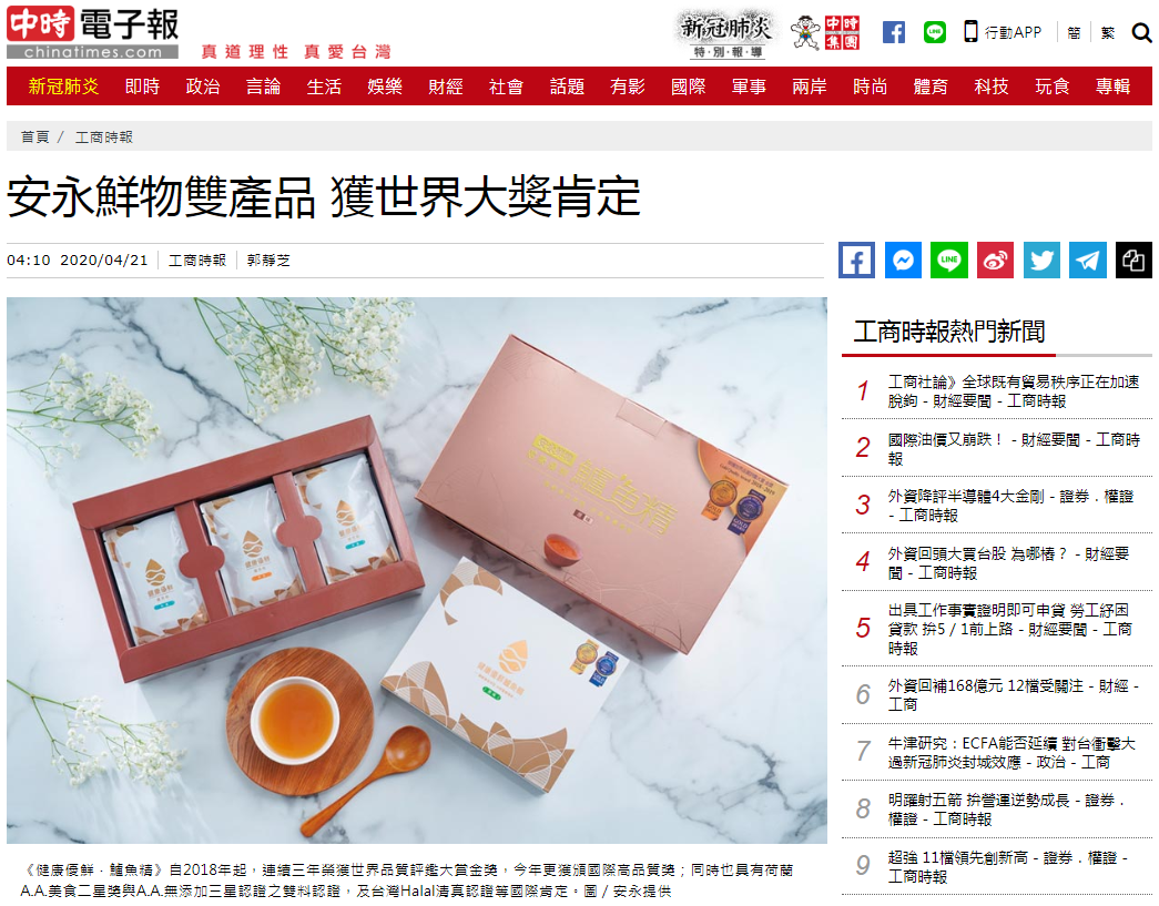 [媒體報導]安永鮮物雙產品 獲世界大獎肯定
