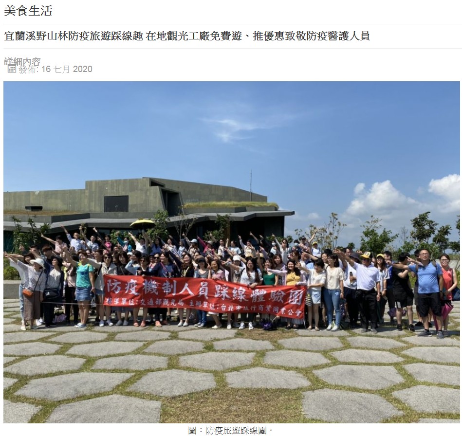 [媒體報導]宜蘭溪野山林防疫旅遊踩線趣 在地觀光工廠免費遊、推優惠致敬防疫醫護人員